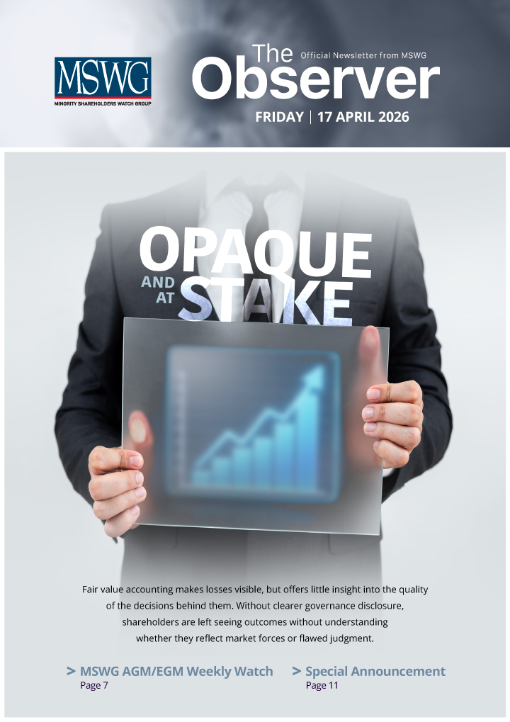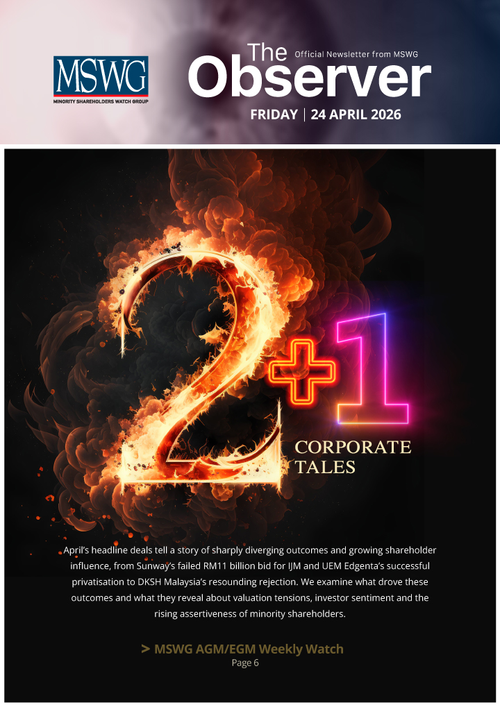The Observer is MSWG’s weekly newsletter that provides timely insights on corporate governance, shareholder rights, and sustainability developments in Malaysia’s capital market.